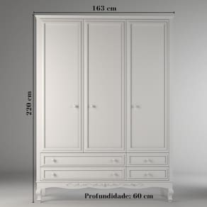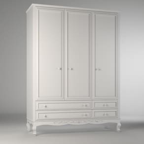 Guarda Roupa Infantil 3 Portas 4 Gavetas Versailles Timber Branco. Móveis clássicos, trazendo o estilo provençal com muita sofisticação. Com design charmoso e arabescos entalhados, os móveis da linha Versailles deixam o quarto digno da realeza. O guarda-roupa Versailles possui uma estrutura robusta e durável, pois utiliza em sua fabricação madeira maciça e MDF de 2,5cm de espessura. A sua base é reforçada, elevando o aspecto clássico e dando maior durabilidade. O acabamento de alto padrão traz: pintura laca, detalhes em alto relevo e arabescos entalhados. Puxadores de madeira maciça. Possui corrediças telescópicas largas, de alta resistência nas gavetas. E dobradiças soft close nas portas, com fechamento com amortecimento. Tem amplo espaço interno, com 5 prateleiras e 1 cabideiro. Disponível nas versões 1,40mt e 1,60mt. Marca: Timber Ean: 7908308793118