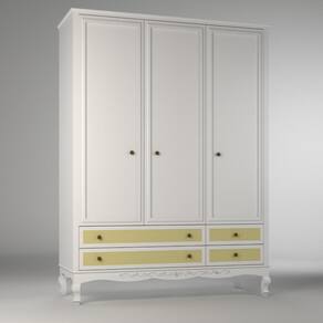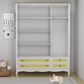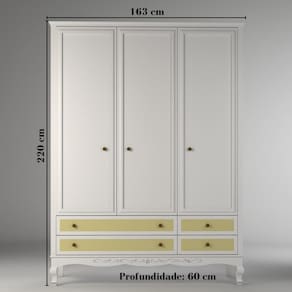Guarda Roupa Infantil 3 Portas 4 Gavetas Versailles Plus Timber Branco. Móveis clássicos, trazendo o estilo provençal com muita sofisticação. Com design charmoso e arabescos entalhados, os móveis da linha Versailles deixam o quarto digno da realeza. O guarda-roupa Versailles possui uma estrutura robusta e durável, pois utiliza em sua fabricação madeira maciça e MDF de 2,5cm de espessura. A sua base é reforçada, elevando o aspecto clássico e dando maior durabilidade. O acabamento de alto padrão traz: pintura laca, palha talagarça aplicada nas gavetas e arabescos entalhados. Puxadores de metal. Possui corrediças telescópicas largas, de alta resistência nas gavetas. E dobradiças soft close nas portas, com fechamento com amortecimento. Tem amplo espaço interno, com 5 prateleiras e 1 cabideiro. Disponível nas versões 1,40mt e 1,60mt. Marca: Timber Ean: 7908308793149