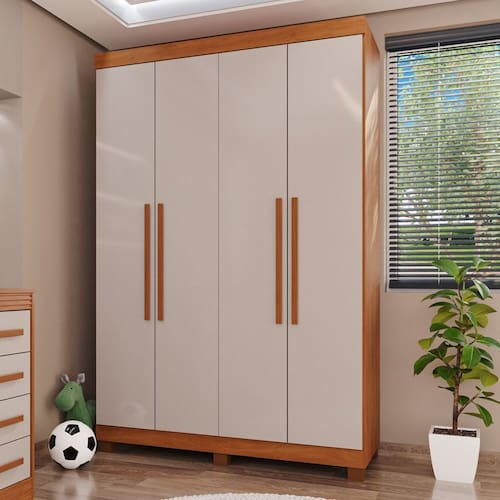 Funcional e versátil, este guarda-roupa infantil conta com 4 portas e 3 gavetas espaçosas, perfeito para manter o quarto sempre organizado. Possui puxadores em MDF, corrediças telescópicas que garantem abertura suave, cabideiro em alumínio para maior resistência e pés em PVC que facilitam a limpeza e protegem o móvel da umidade. Ideal para o dia a dia das crianças com praticidade e estilo. Acabamento da Prateleira: Pintura UV Escala de Brilho da Prateleira: Semi-Fosco Possui Cabideiros: Sim Acabamento da Gaveta: Pintura UV Possui Organizador de Gaveta: Não Acabamento da Porta: Pintura UV Escala de Brilho da Porta: Semi-Fosco Material do Puxador da Porta: MDF Ambiente Principal: Quarto Infantil codigo_ean: 7900288223272 Complexidade da Montagem: Alta: deve ser montado por um montador especializado Cor: Cinamomo / Off White Cor do Produto: Cinamomo / Off White Escala de Brilho: Semi-Fosco Gaveta com Chave: Não Itens Inclusos: 1 Guarda-Roupa, Manual de Montagem e Kit Ferragens. Linha ou Coleção: Alice Manual de Montagem e Instalação: https://product-hub-prd.madeiramadeira.com.br/432034701/documents/6dffae62-6148-4e80-b93e-42ce4b3a5d403102398493817537944754993.pdf Marca: Espresso Móveis Material da Gaveta: MDP Material da Porta: MDP Material da Prateleira: MDP Material dos Pés: PVC Material Principal: MDP modular: Não Necessita Montagem: Sim Origem do Produto: Nacional Peso: 112 kg Peso Máximo por Gaveta: 5 kg Peso Máximo por Prateleira: 5 kg Possui Calceiros: Não Possui Espelho: Não Possui Pés: 06 Possui Portas: Sim Produto Montado: Sim Recomendações de Uso, Manutenção e Limpeza: Limpeza com pano macio e levemente umedecido. Não utilizar solventes a base e de inflamáveis. Não utilizar produtos abrasivos. Sistema de Montagem: Parafusos e cavilhas Tipo de Corrediça da Gaveta: Metálica Telescópica Tipo de Dobradiça/Corrediça da Porta: Metálica Tipo de Gaveta: Externa Tipo de Guarda-Roupa: Infantil Tipo de Puxador da Porta: Externo