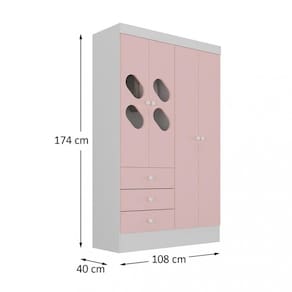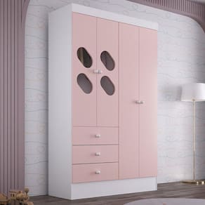 Guarda Roupa Infantil 4 Portas com Janela 2 Gavetas Maya Rodial - Rosa