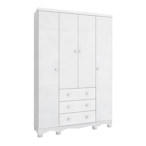 Guarda Roupa Infantil 4 Portas e 3 Gavetas 100% MDF Mimo Branco Brilho. O Guarda Roupa Mimo foi desenvolvido para oferecer qualidade, beleza, conforto e segurança para toda família na hora de montar o quartinho do(a) bebê. É produzido com estrutura 100% MDF e acabamento em pintura UV atóxica. Possui 4 portas, 3 gavetas que deslizam sob corrediças metálicas telecópicas, 1 cabideiro metálico, 5 prateleiras para acomodar as peças com organização da sua preferência, puxadores e pés em plástico. Acompanham o produto, 2 opções de rodapés, um usinado (torneado) e outro reto, para que você escolha no momento da montagem qual se adequa ao estilo do ambiente. Aproveite para adquirir o seu agora! Ean: 7898593963504