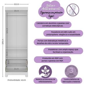 Altura: 189cm | Largura: 62cm | Profundidade: 41cm