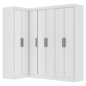Guarda-Roupa Infantil 7 Portas Jasmim Branco. Modulado Jasmim - Funcionalidade e Estilo. É composto por diferentes módulos que podem ser combinados de acordo com seu gosto e espaço. Esta modulação conta com um Guarda Roupa de Canto e mais um Guarda Roupa 2 portas e um Guarda Roupa 5 portas, os quais possuem amplo espaço interno muito bem dividido, com prateleiras que permitem um melhor aproveitamento do espaço acomodando com facilidade roupas, calçados e brinquedos, além de seus cabideiros em madeira que oferecem resistencia e versátilidade ao uso diário. Modulado Jasmim é a escolha certa para você que busca praticidade e um visual moderno para o quarto infantil.