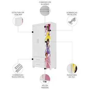 Guarda Roupa Infantil 89cm Com 3 Portas Princesa Rosa Z53 - Mpozenato