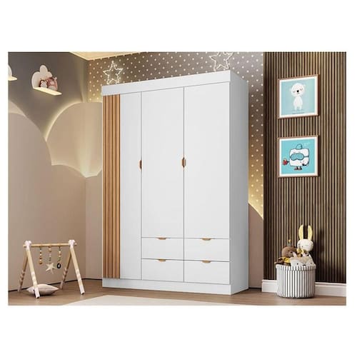Guarda Roupa Infantil Ambiente Ayla 3 Portas Branco Acetinado - Phoenix
