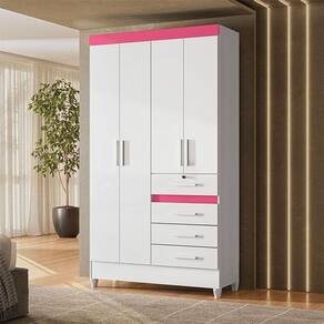 Começou a montar o quarto do seu filho? Então apresentamos para você este belo guarda roupa da linha Sobral. Com o inovador sistema , pode escolher as opções ndas cores na hora da montagem: branco/ rosa/ azul/ lilás, garantindo uma combinação perfeita no ambiente. Com quatro portas e quatro gavetas equipadas com corrediças metálicas, sendo a primeira com chave para maior . Oferece um amplo espaço interno para acomodar as roupinhas e acessórios do seu pequeno. Os puxadores em MDF dão um design sofisticado, enquanto os pés em PVC proporcionam mais estabilidade e durabilidade. Fabricado pela Moval, é desenvolvido em MDP de qualidade. Sendo perfeito para quem busca praticidade e organização para compor o quarto do seu filho, aproveite!