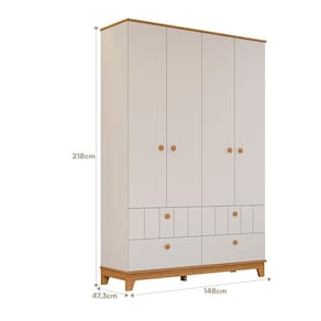 O Guarda Roupa Infantil Biscoito possui uma estrutura resistente em MDF e acabamento em pintura UV, este guarda-roupa oferece durabilidade e estilo para o ambiente infantil. Com 4 portas, 4 gavetas espaçosas e prateleiras internas, proporciona amplo espaço para organizar roupas, acessórios e brinquedos. As dobradiças metálicas e corrediças telescópicas garantem suavidade e durabilidade no uso diário. Além disso, conta com puxadores em madeira maciça, adicionando um toque de charme ao móvel. Com pés em MDF e capacidade para suportar até 3kg em cada gaveta, este guarda-roupa é a escolha perfeita para manter o quarto do seu filho organizado e funcional por muito tempo. Transforme o espaço do seu pequeno em um ambiente acolhedor e encantador com o Guarda Roupa Infantil Biscoito.