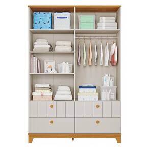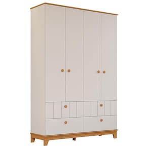 O Guarda Roupa Infantil Biscoito possui uma estrutura resistente em MDF e acabamento em pintura UV, este guarda-roupa oferece durabilidade e estilo para o ambiente infantil. Com 4 portas, 4 gavetas espaçosas e prateleiras internas, proporciona amplo espaço para organizar roupas, acessórios e brinquedos. As dobradiças metálicas e corrediças telescópicas garantem suavidade e durabilidade no uso diário. Além disso, conta com puxadores em madeira maciça, adicionando um toque de charme ao móvel. Com pés em MDF e capacidade para suportar até 3kg em cada gaveta, este guarda-roupa é a escolha perfeita para manter o quarto do seu filho organizado e funcional por muito tempo. Transforme o espaço do seu pequeno em um ambiente acolhedor e encantador com o Guarda Roupa Infantil Biscoito.