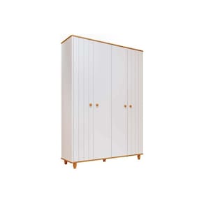 Guarda Roupa Infantil c/ 4 Portas (2 Ripadas) Cupcake Branco/Nature - Permóbili Baby