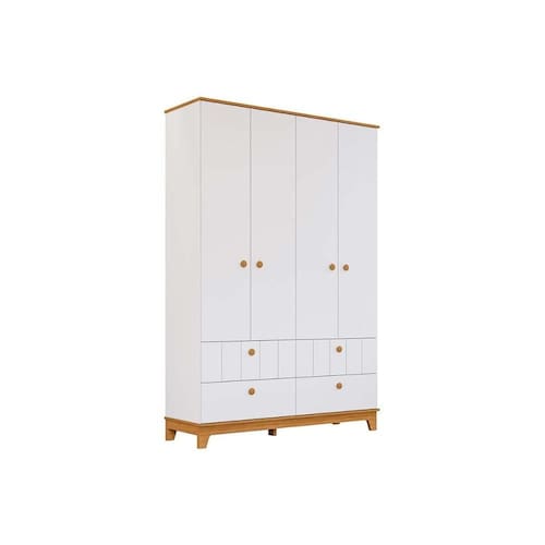 Guarda Roupa Infantil c/ 4 Portas e 4 Gavetas Biscoito Branco/Nature - Permóbili Baby