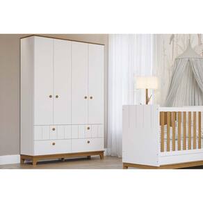 Guarda Roupa Infantil c/ 4 Portas e 4 Gavetas Biscoito Off White/Nature - Permóbili Baby