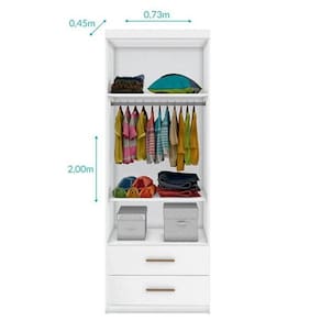 Guarda Roupa Infantil Chiara 2 Portas E 2 Gavetas Branco - Phoenix Baby Branco Guarda Roupa Infantil Chiara 2 Portas e 2 Gavetas - Phoenix Baby O Guarda-Roupa Infantil Chiara foi pensado nos quartinhos compactos. O Guarda-Roupa é uma peça muito importante para o quarto e para montar o visual perfeito, esse modelo é uma ótima opção pois conta com aspecto clean. Ele possui 2 portas e 2 gavetas com compartimentos internos para roupas e objetos em geral ficarem organizados de maneira prática para o dia a dia. ESPECIFICAÇÕES: - Estrutura em MDP - Pintura UV - 2 Portas - Dobradiças metálicas - 2 Gavetas - Corrediças telescópicas - Cabideiro - Prateleiras - Maleiro - Puxadores de madeira - Amplo espaço interno