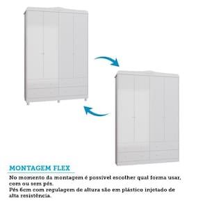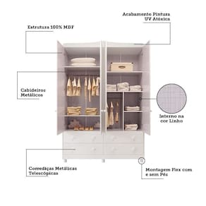 O Guarda-Roupa Infantil Elô 4 Portas e 4 Gavetas combina funcionalidade e delicadeza para o quarto das crianças. Com estrutura em MDF e pintura UV atóxica, conta com 4 portas, possui cabideiro metálico, prateleiras bem distribuídas e 4 gavetas com corrediças telescópicas que suportam até 4kg cada. Os puxadores pontuais em plástico e os pés no mesmo material garantem praticidade no uso diário. Um guarda-roupa espaçoso e eficiente para manter tudo organizado com estilo.