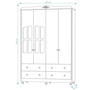 - Cabideiros metálicos - Puxadores Plásticos - Portas com PETG cristal - Corrediças Telescópicas. - Tipo de Portas: Articuladas - Número de Portas: 4 - Número de Gavetas: 4 - Gavetas: Sim - Tipo de pé: Pés com regulagem de altura - Espelho: Não - Tipo de Prateleira: Fixa