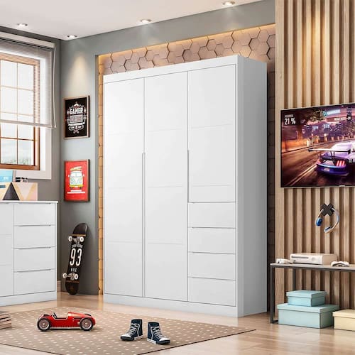 que tal o guarda-roupa eloá?espaço é muito importante para que o quarto das crianças seja organizado e acompanhe da hor maneira o crescimento, por isso o guarda-roupa eloá é a escolha ideal para o quarto do seu pequeno. com gavetas, nichos e prateleiras ideais para armazenar roupinhas, sapatos, brinquedos e outros itens do dia a dia, este móvel é feito para deixar a organização perfeita enquanto também agrega à decoração - o design delicado e cor sóbria facilitaomposição da peça com outros móveis e enfeites, como cômoda, cama ou papel de parede. com muito bom gosto e charme, o cantinho do seu filho estará sempre impecável e pronto para a aventura que é crescer. Marca: Modern
