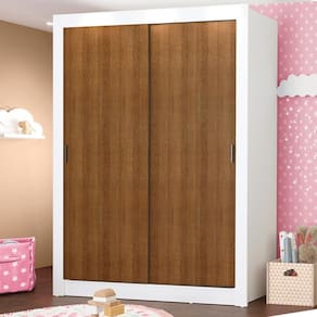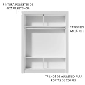 - Itens inclusos: Um cabideiro metálico grande | Duas prateleiras e quatro nichos | Duas portas de correr de madeira com puxadores em PVC
