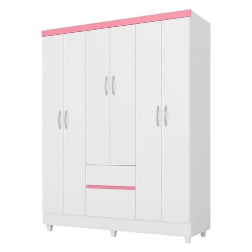 Guarda Roupa Infantil Flash 2 Branco Rosa Demóbile