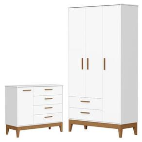 Guarda Roupa Infantil Flip 3 Portas com Cômoda Infantil Sapateira Flip Branco Acetinado - Reller