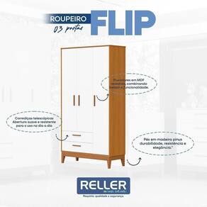 Guarda Roupa Infantil Flip 3 Portas e 2 Gavetas - Reller Móveis