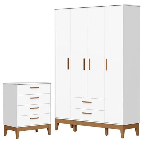Guarda Roupa Infantil Flip 4 Portas com Cômoda Gaveteiro Infantil Flip Branco Acetinado - Reller