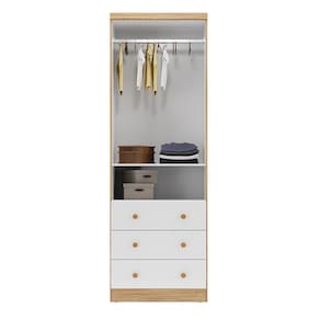 ESPECIFICAÇÕES: Estrutura em MDF Pintura UV atóxica 2 Portas Dobradiças metálicas Cabideiro metálico Prateleira 3 Gavetas Corrediças telescópicas Suporta até 4Kg em cada gaveta Puxadores em plástico 2 Opções de rodapés: um usinado (torneado) e outro reto Amplo espaço interno