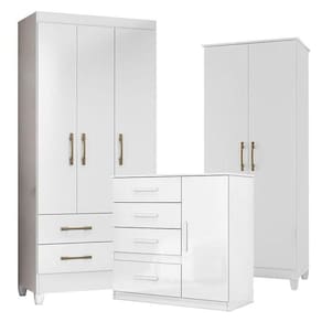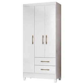 Guarda Roupa Infantil Lima com Cômoda Vênus e Armário Multiuso Jade Branco Brilho Moval
