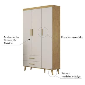 Guarda Roupa Infantil Ludmila Off White Bétula - Carolina Baby