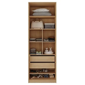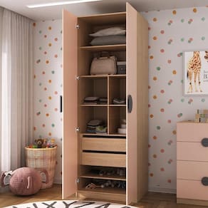 Guarda Roupa Infantil Modulado 2 Portas com Nichos e 2 Gavetas Joy Kids CabeCasa MadeiraMadeira Salmão/Avena. O guarda roupas modular Joy Kids CabeCasa foi desenvolvido para trazer a experiência de ter seu guarda roupas planejado e organizado por uma personal organizer acessível ao cliente MadeiraMadeira. O módulo Cabideiro foi desenvolvido para ser versátil e adaptável a sua rotina. Ele foi pensado para a melhor organização e disposição das roupas, possui opção de ser montado com apenas um cabideiro para peças longas ou dois cabideiros para peças curtas, além disso possui prateleiras removíveis e com regulagem de altura, sendo uma ótima opção para quem prefere pendurar as roupas. Para auxiliar e deixar a organização mais fácil no dia a dia, o produto ainda conta com um kit de separadores de cabides e uma cartela de adesivos para identificar os espaços. Desta forma você pode categorizar e separar melhor a suas roupas mantendo a organização por mais tempo. O modulado possui ainda puxadores em madeira maciça envernizados na cor preta, portas com dobradiças soft closing e cabides em aço cromado. Além disso, conta com design atual e alinhado às tendências, conferindo mais sofisticação a sua decoração sem deixar de lado a praticidade!