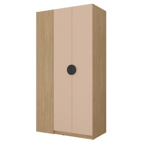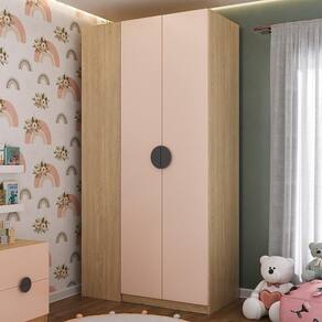Guarda Roupa Infantil Modulado de Canto 2 Portas Joy Kids CabeCasa MadeiraMadeira Salmão/Avena. O guarda roupas modular Joy Kids CabeCasa foi desenvolvido para trazer a experiência de ter seu guarda roupas planejado e organizado por uma personal organizer acessível ao cliente MadeiraMadeira. O módulo Cabideiro foi desenvolvido para ser versátil e adaptável a sua rotina. Ele foi pensado para a melhor organização e disposição das roupas, possui opção de ser montado com apenas um cabideiro para peças longas ou dois cabideiros para peças curtas, além disso possui prateleiras removíveis e com regulagem de altura, sendo uma ótima opção para quem prefere pendurar as roupas. Para auxiliar e deixar a organização mais fácil no dia a dia, o produto ainda conta com um kit de separadores de cabides e uma cartela de adesivos para identificar os espaços. Desta forma você pode categorizar e separar melhor a suas roupas mantendo a organização por mais tempo. O modulado possui ainda puxadores em madeira maciça envernizados na cor preta, portas com dobradiças soft closing e cabides em aço cromado. Além disso, conta com design atual e alinhado às tendências, conferindo mais sofisticação a sua decoração sem deixar de lado a praticidade!