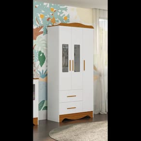 O Armário Clara 3 Portas Lisas Plus é um produto 100% MDF e possui pintura atóxica. Sua estrutura é fabricada em chapa de 12 mm, sendo seu tampo superior em chapa de 15 mm. Possui puxadores em MDF revestido com papel melamínico, cabideiro metálico e gavetas com corrediças telescópicas. Acompanha dois modelos de rodapés que podem ser definidos no momento da montagem.
