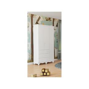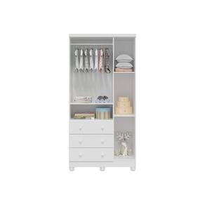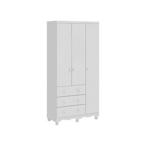 O Armário Júnior New 3 Portas é um produto 100% MDF e possui pintura atóxica. Sua estrutura é fabricada em chapa de 12 mm e seus pés são injetados em plástico de alta resistência. Os puxadores são também em plástico. Os cabideiros são metálicos e suas gavetas possuem corrediças apoiadas metálicas. Acompanha dois modelos de rodapés que podem ser definidos no momento da montagem.