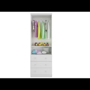 O Armário Tedy New 2 Portas é um produto 100% MDF e possui pintura atóxica. Sua estrutura é fabricada em chapa de 12 mm. Possui puxadores plásticos e cabideiro metálico. As gavetas possuem corrediças apoiadas metálicas e suas portas possuem detalhe com PETG cristal. Acompanha dois modelos de rodapés que podem ser definidos no momento da montagem e aceita adaptação de kit pés.