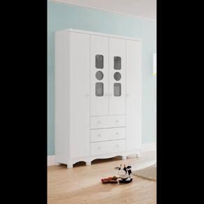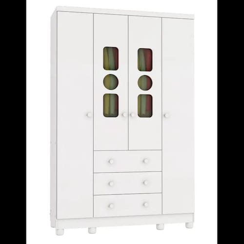 O Armário Tedy New 4 Portas é um produto 100% MDF e possui pintura atóxica. Sua estrutura é fabricada em chapa de 12 mm e seus pés são injetados em plástico de alta resistência. Os puxadores são também em plástico. Os cabideiros são metálicos e suas gavetas possuem corrediças apoiadas metálicas.