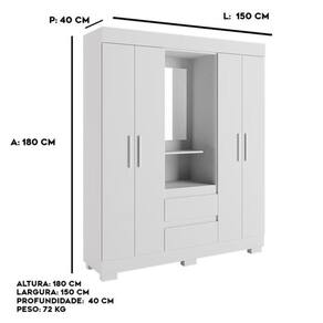 Materiais da estrutura: MDP | Possui Prateleiras: Sim | Peso Suportado: 80 Kg (distribuídos de forma adequada no mesmo) | Sistema de montagem: Convencional (Parafusos, minifix e cavilhas) | Tipo de Corrediças: Telescópicas | Necessita de Montagem: Sim | Tipo de Garantia: Garantia do Fornecedor | Possui Puxadores: Sim | Garantia: 03 meses | Quantidade de Gavetas: 02 | Quantidade de Portas: 04 | Possui Cabideiro: Sim | Possui Portas: Sim | Possui Gavetas: Sim | Peso Suportado por Prateleira: 5 Kg | Marca: Linha Mobília | Altura: 180 Cm | Largura: 150 Cm | Profundidade: 40 Cm | Peso: 72 Kg | Tamanho do Móvel: Casal | Acabamento: Pintura UV (Ultravioleta) | Peso Suportado por Gaveta: 5 Kg | Material dos Cabideiros: Alumínio | Modelo: Portugal | Possui Espelho: Sim | Tipo de produto: Guarda-roupa | Requer montagem: Sim | Inclui manual de montagem: Sim | Quantidade de Prateleiras: 3 Cor: Branco