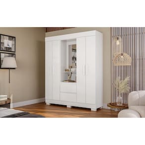 Guarda-Roupa Infantil Portugal Com Espelho 4 portas e 2 Gavetas Linhamobília