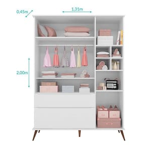 Guarda Roupa Infantil Retrô Alice Branco Acetinado - Phoenix Baby