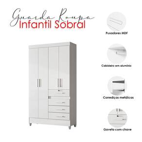 Guarda Roupa Infantil Sobral 4 Portas Branco Flex - Moval