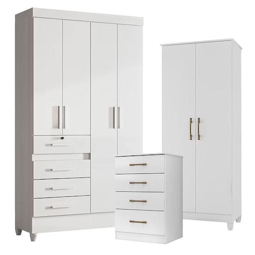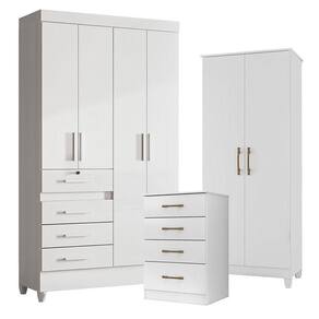 Guarda Roupa Infantil Sobral com Cômoda MS913 e Armário Multiuso Jade Branco Brilho Moval