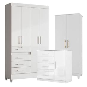 Guarda Roupa Infantil Sobral com Cômoda Vênus e Armário Multiuso Jade Branco Brilho Moval