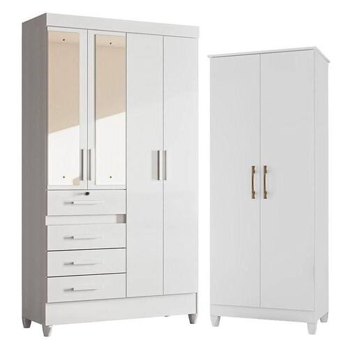 Guarda Roupa Infantil Sobral com Espelho e Armário Multiuso Jade Branco Brilho Moval