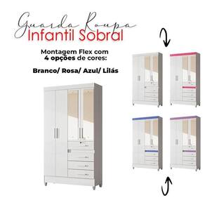 Transforme seu quarto com praticidade, estilo e o melhor custo beneficio do mercado. Apresentamos o Guarda Roupa Infantil Sobral e Armário Multiuso Jade fabricados pela Moval. Guarda Roupa com um inovador sistema com quatro opções de cores na hora da montagem: branco/rosa/azul/lilás, possui 04 portas sendo 02 com espelhos, 04 gavetas sendo a primeira com fechadura e chave ideal para guardar itens pessoais com , corrediças metálicas, puxadores em MDF, cabideiros em alumínio para melhor organização interna e pés em PVC. O Armário Multiuso possui 02 portas, quatro prateleiras internas. Seu diferencial é o gancho metálico multifuncional, ideal para pendurar seus acessórios, otimizando ainda mais o espaço, puxadores na cor bronze, pés em PVC e um design moderno que combina com qualquer decoração. Fabricado com materiais de alta qualidade que garante resistência e durabilidade ao produto. Confira mais detalhes e aproveite!