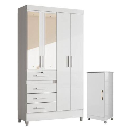 Guarda Roupa Infantil Sobral com Espelho e Armário Multiuso Lírio Branco Brilho – Moval