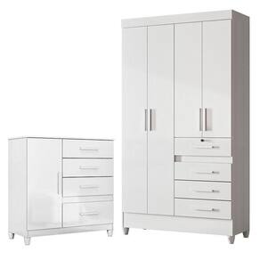 Guarda Roupa Infantil Sobral e Cômoda Vênus com pés Branco Moval
