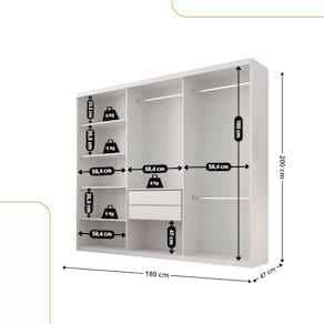 Dimensões do Roupeiro: Altura: 200 cm Largura: 180 cm Profundidade: 47 cm