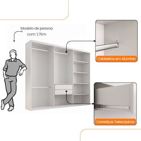 Características: Tipo de Acabamento: Pintura UV Material das Corrediças: Telescópica Material dos Cabideiros: Alumínio Possui espelho: Não