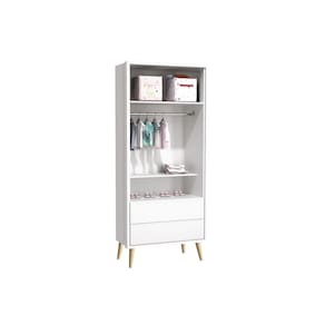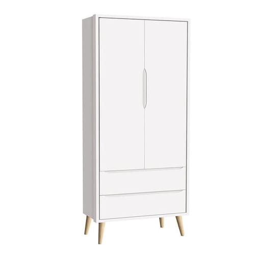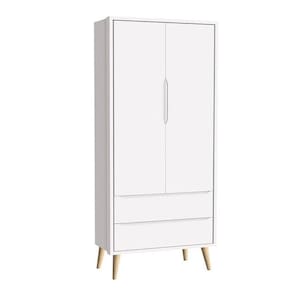 Guarda Roupa Infantil Theo 2 Portas Branco Acetinado com Pés Madeira Natural Reller