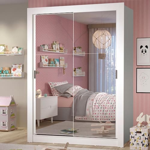 - Duas (2) portas de correr com espelhos e puxadores em PVC