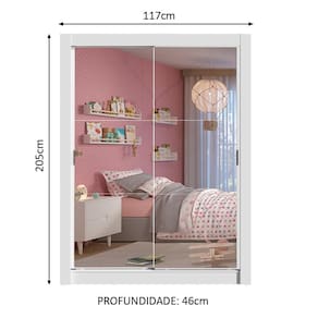 Medidas totais do guarda-roupa: 205 cm de altura x 117 cm de largura x 46 cm de profundidade.