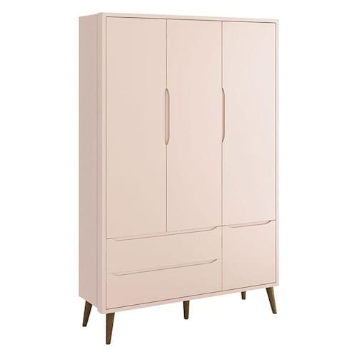 Guarda Roupa Infantil Theo 3 Portas Rosa com Pés Amadeirados Reller