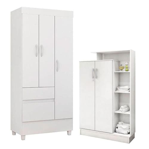 Guarda Roupa Infantil Wind e Armário Multiuso Elite Branco Brilho - Demóbile